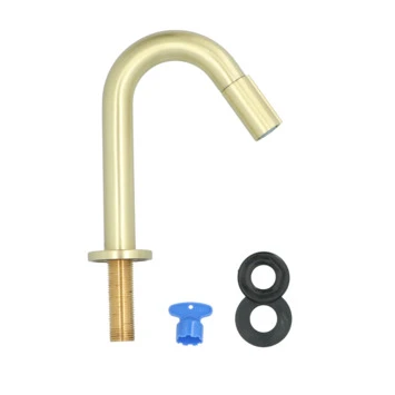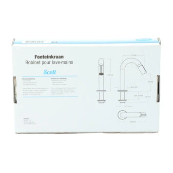 De Atlantic fonteinkraan Scott met draaiknop Messing bestaat uit een messing fonteinkraan van 17,8 cm hoog, bevestigingsmateriaal en montagehandleiding. De kraan heeft een diepte van slechts 11,2 cm en is daarmee uitermate geschikt voor gebruik in het toilet. De Scott fonteinkraan zet je open met de draaiknop op het uiteinde van de kraanuitloop. Aan de anti-kalk perlator hecht kalk zich moeilijk vast en veeg je er gemakkelijk met de hand af. De ronde c-vormige kraan heeft een geborstelde goudkleurige messing afwerking. Gebruik alleen water en een zachte doek om de kraan schoon te maken. Gebruik geen schurend, bijtend, azijnhoudend of agressief schoonmaakmiddel. Op de kraan heb je 5 jaar garantie.Â