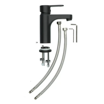 De Atlantic wastafelkraan Parker met hendel Zwart bestaat uit een mat zwarte wastafelkraan van 16,5 cm hoog en 14,1 cm diep met 2 flexibele aansluitslangen van 41 en 42 cm, bevestigingsmateriaal en montagehandleiding. Met de eenhendelbediening draai je met 1 hand de kraan naar de gewenste temperatuur. Je bespaart water door de ingebouwde eco-klik. De ingebouwde weerstand in de hendel zorgt ervoor dat je de kraan niet direct op de hoogste straalstand zet. Wens je toch een hardere straal, dan zet je de hendel verder open. Eco start laat alleen koud water door de kraan stromen als de hendel in het midden staat. In tegenstelling tot standaard mengkranen waarbij warm water gemengd wordt in de middelste stand. Zo bespaar je naast water door eco-klik dus ook (warmte)energie door eco start. De kraan heeft een heel gemakkelijk bevestigingssysteem, topfixing. De kraan schroef je daarmee eenvoudig van bovenaf op de wastafel vast. Geen gedoe meer met monteren! Aan de anti-kalk perlator hecht kalk zich moeilijk vast en veeg je er makkelijk met de hand af. Deze rechte strak vormgegeven kraan heeft een moderne krachtige uitstraling door de mat zwarte afwerking. De kraan onderhoud je het best door alleen water en een zachte doek te gebruiken bij het schoonmaken van de kraan. Gebruik geen schurend, bijtend, azijnhoudend of agressief schoonmaakmiddel. Op de kraan heb je 5 jaar garantie.