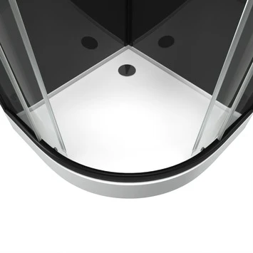 Deze strak ontworpen zwarte douchecabine van Aurlane is perfect wanneer je iets minder ruimte in de badkamer hebt. De cabine beschikt namelijk over een dubbele schuifdeur in de hoek. Daardoor heb je geen extra ruimte nodig om de deuren te kunnen openen. De hoekinstap heeft een opening van 50 cm in de breedte en de wanden zijn gemaakt van 4 mm dik veiligheidsglas. Daar bovenop heeft de cabine een ingebouwde regendouche, een handdouche en 2 grote waterjets. De douchebak van deze Aurlane Douchecabine met Schuifdeur Black Mirror 2 Kwartrond Zwart 90×90 cm heeft een ondersteuningsframe met 5 steunpoten. De hele set bestaat uit een centrale douchekolom, een douchebak, een voorzijde in zwart veiligheidsglas van 4 mm dik en een set achterwanden in zwart acryl. Deze cabine is ook beschikbaar in een vierkante en rechthoekige uitvoering.