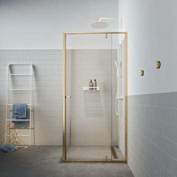 Met Contour is een luxe badkamer binnen handbereik. Dankzij haar strakke lijnen en geborstelde gouden kleurafwerking past deze draaideur met zijwand perfect in een chique badkamerstijl. Het 6 mm dikke veiligheidsglas is voorzien van een antikalklaag, waardoor je douche langer helder blijft. De deur scharniert niet direct tegen de muur, zodat de deur niet tegen een radiator of accessoire stoot. Een ding is zeker: deze douchecabine is een échte eyecatcher in de badkamer.