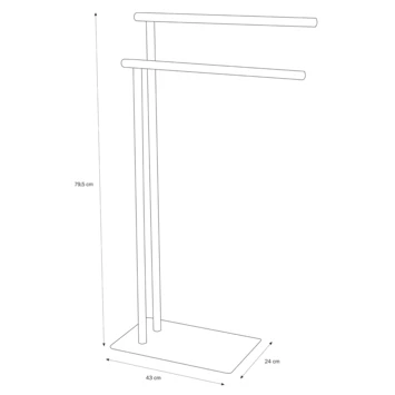 Het Sealskin Handdoekrek Brix Metaal Wit is een handig dubbel handdoekrek voor in je badkamer. Aan de 2 standaarden hang je gemakkelijk 2 handdoeken op. Met de afmeting van 79,5 cm hoog, 43 cm breed en 24 cm diep past dit vrijstaande handdoekrek in vrijwel iedere badkamer en je hebt geen boorgaten nodig om het te installeren. Bovendien kun je het altijd neerzetten waar jij het wil. Dat biedt je een hoop flexibiliteit. De prachtige houten accenten in combinatie met de wit metalen basis geven een stijlvolle uitstraling en passen in ieder interieur. Op het rek krijg je 1 jaar garantie. Het is wel belangrijk dat je de set regelmatig schoonmaakt met een vochtige doek, zo heb je lang plezier van jouw handdoekhouder. In de Brix-serie kun je ook andere bijpassende producten kopen bij Gamma.