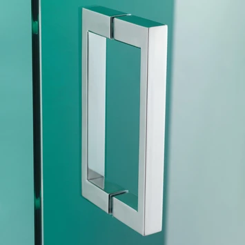 Sealskin Swingdeur voor Douchewand I AM 200×90 cm Chroom, 8mm helder veiligheidsglas + antikalk. De volledig profielloze serie ‘I AM’ is met recht een transparante alleskunner. Naast diverse standaard maatvoeringen zijn talloze maatwerkoplossingen mogelijk. Zo kunnen we de breedte en hoogte aanpassen, maar bijvoorbeeld ook eventuele schuintes in de muren of het plafond opvangen. Deze draaideur, gecombineerd met een vaste zijwand, maken een moderne, transparante douche. Het veiligheidsglas van maar liefst 8mm is altijd voorzien van een antikalk laag waardoor kalk en viezigheid zich minder snel zal hechten. De scharnieren van I AM zijn zelfsluitend. Dat zorgt ervoor dat de deur automatisch naar zijn nulpunt gaat; hij gaat dus vanzelf dicht! Bovendien is dat nulpunt in te stellen. Je kunt je deur dus onder een hoek plaatsen en zo een unieke oplossing maken.I AM draaideuren voor combinatie met zijwand zijn ook beschikbaar in de standaardmaat 1000mm en natuurlijk als maatwerk oplossing. De scharnieren en grepen zijn tevens beschikbaar in een modern RVS uitstraling en in een unieke matzwarte afwerking.