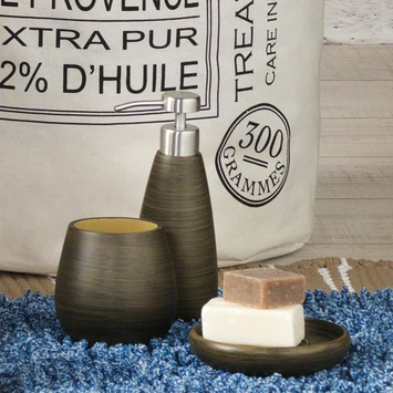 Voor een natuurlijke uitstraling in je badkamer kies je voor de Miyagi serie. De accessoires zijn uitgevoerd in een zware kwaliteit polyresin met hout dessin. De Tiger Zeepdispenser Miyagi Hoog Wood is eenvoudig te reiningen met een vochtige doek.