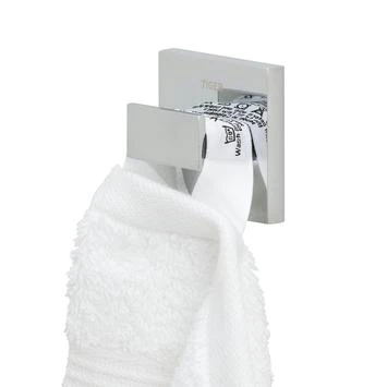 De Tiger Haak Items Groot Chroom van de accessoire serie Items is uitgevoerd in chroom, en is ook verkrijgbaar in RVS. Dit product kan aan de wand worden geschroefd, maar kan ook met behulp van Tigerfix 1 op een gladde en harde ondergrond geplakt worden. Je hoeft dus niet te boren. (Tigerfix is los verkrijgbaar). Er zijn van deze serie diverse sanitair accessoires verkrijgbaar. Dit product maakt deel uit van het Items totaalconcept, dat verder bestaat uit kranen, badmeubelen, douche accessoires en douchecabines, alles in de Items stijl.