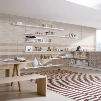 De Cementum Tusk is beige wandtegel met rustieke uitstraling. De tegels creeren een landelijke sfeer en zijn goed te comineren met andere tegels. De tegels hebben een licht golvend oppervlakte en zijn niet gerectificeerd. De tegels zijn geschikt voor op de wand en zowel voor droge als natte ruimtes te gebruiken.